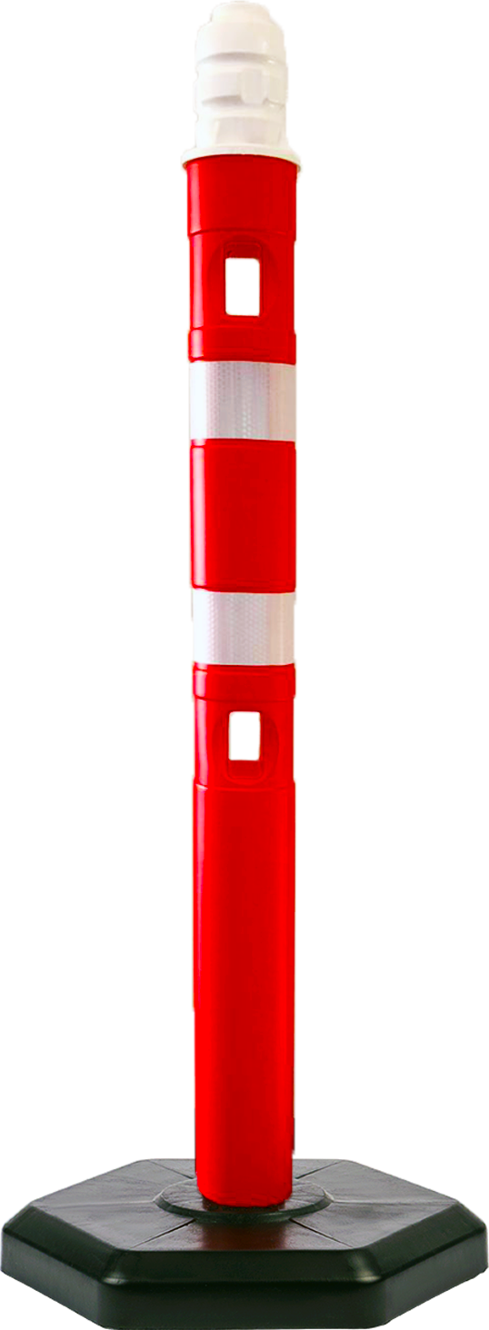 Our flexible delineators serve as a robust enhancement to permanent markings, guiding through divergent signaling to streamline lane separations on curves and safeguard pedestrian zones by outlining sidewalks. Their design is engineered for resilience and clarity, ensuring a safe and intuitive navigational experience for all road users.